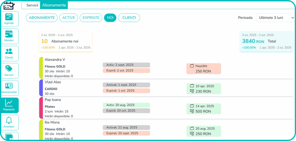 👉 Exemplu: dacă vezi că mulți clienți nu își reînnoiesc abonamentul după prima lună, poți introduce reduceri pentru reînnoire sau beneficii suplimentare pentru fidelitate.